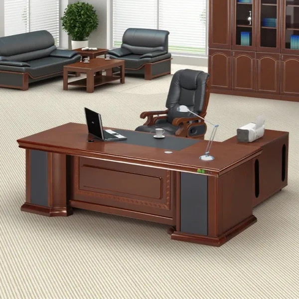 Crafted from high-quality materials, the Executive Desk stands up to the rigors of daily use. Its sturdy frame provides unwavering support, while its durable surface withstands scratches and wear, ensuring long-lasting performance and a professional appearance for years to come.