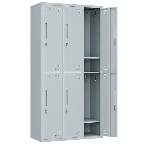 Six Spacious Lockers: The cabinet features six individual lockers, each with its own door and locking mechanism, providing ample storage space for personal belongings.