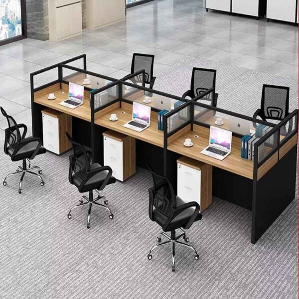 A 6-way modular workstation offers a high degree of flexibility and adaptability, with various configuration options to suit a range of professional needs. Whether it’s creating individual, private workspaces or a collaborative hub, these workstations can be customized to enhance both productivity and comfort