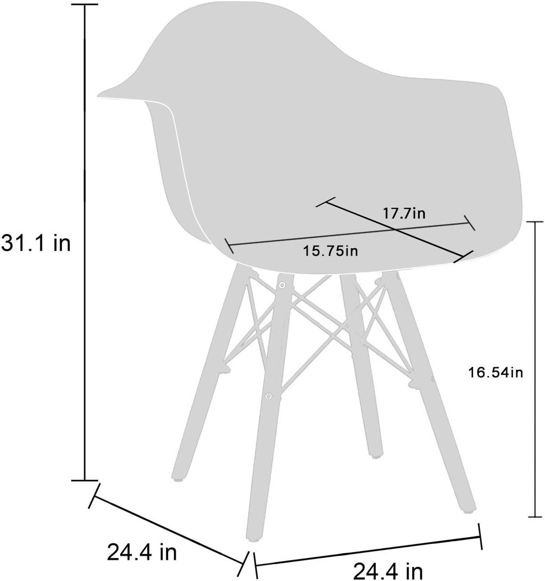 Add a subtle charm and presence with this aesthetically pleasing Eames Dining Chairs with Arms. Smooth, gentle curves provide style and conforms to your body allowing you to sit comfortably. The durable matte plastic molded chair and geometrically designed wooden legs add an artistic appeal. You can instantly modernize your living room, kitchen or dining room, mixing it up with different colors. The versatility of this Eames Dining Chairs with Armchair will have you in the office negotiating deals and in the home kicking back spending time with the family. This graceful Eames Dining Chairs with Arm is well suited to complement any setting as a single chair or pair.