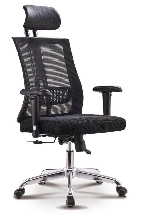 - Material:Â The chair is often covered in durable, breathable fabric or mesh. Mesh backrests are popular for their breathability, while leather or synthetic leather options offer a more executive look.