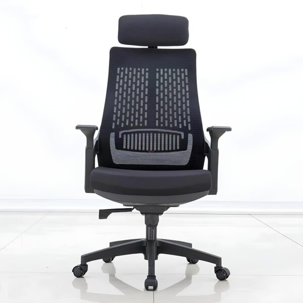The High-Back Mesh Chair is an elegant and functional choice for any office setting. Its primary black color exudes a professional and modern aesthetic, seamlessly blending with various décor styles. The chair’s breathable mesh backrest ensures optimal air circulation, keeping you cool and comfortable even during long working hours.