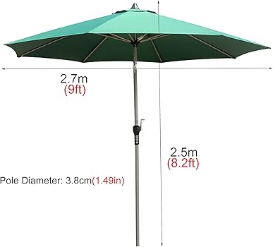 - Size:Â Patio umbrellas come in various sizes, typically ranging from 6 to 13 feet in diameter. The size you choose depends on the area you want to cover and the size of your outdoor furniture.