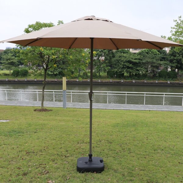 - Stability:Â A sturdy base is essential to keep the umbrella in place. The base can be made from heavy materials like cast iron, steel, concrete, or filled with water or sand to provide the necessary weight.
